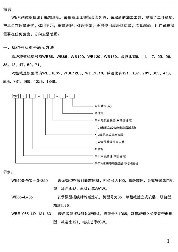 WB微型摆线减速机—WB摆线减速机的型号表示方法