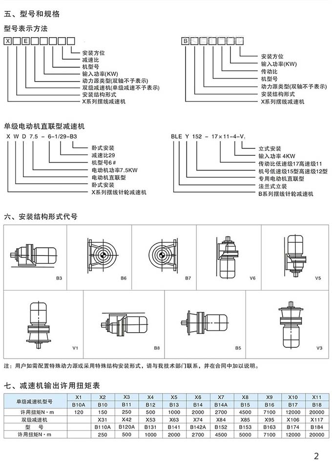 X/B摆线减速机型号,规格和扭矩力表 - X/B系列摆线针轮减速机