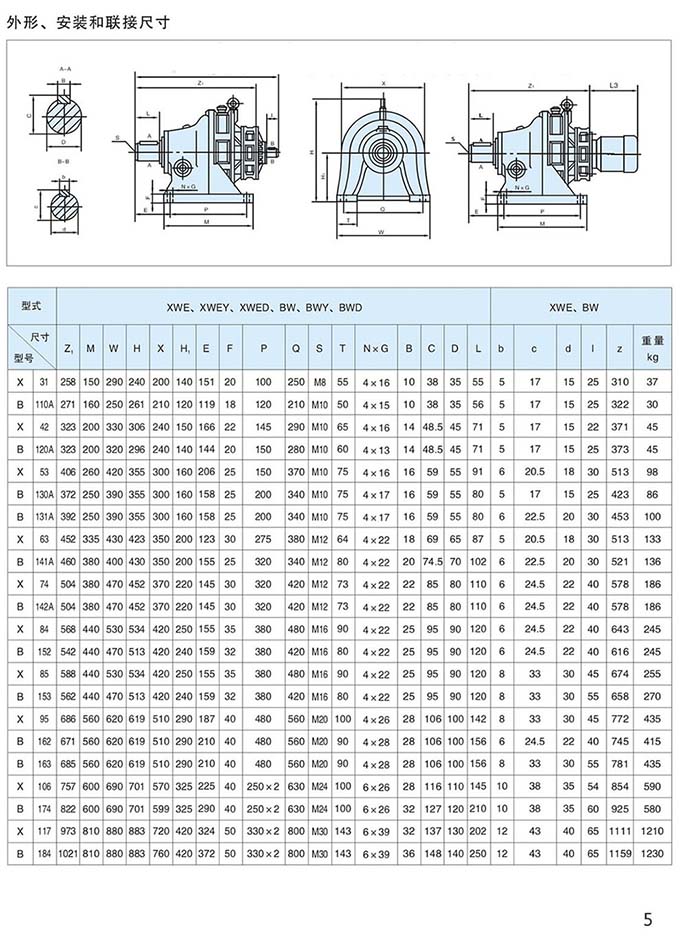 双级卧式摆线减速机外形,安装和联接尺寸 - X/B系列摆线针轮减速机