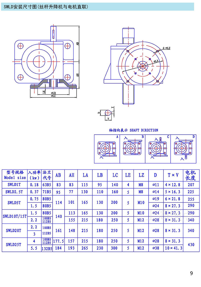 SWLD丝杆升降机安装尺寸
