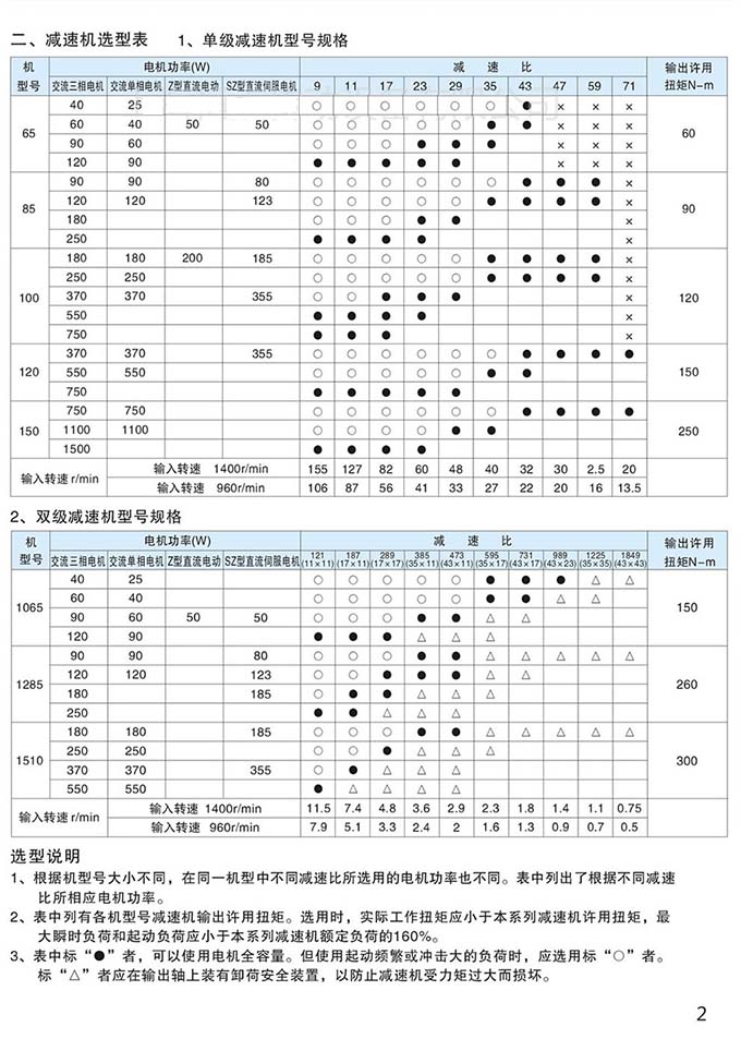 WB微型摆线减速机的选型表 - WB微型摆线减速机