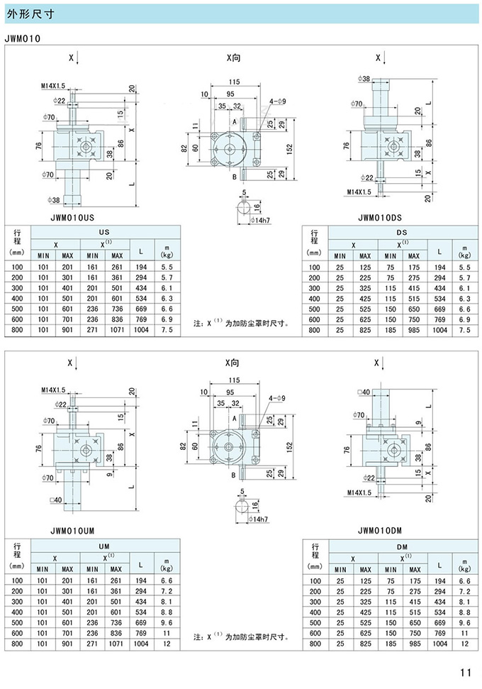 JWM螺旋升降机的外形尺寸