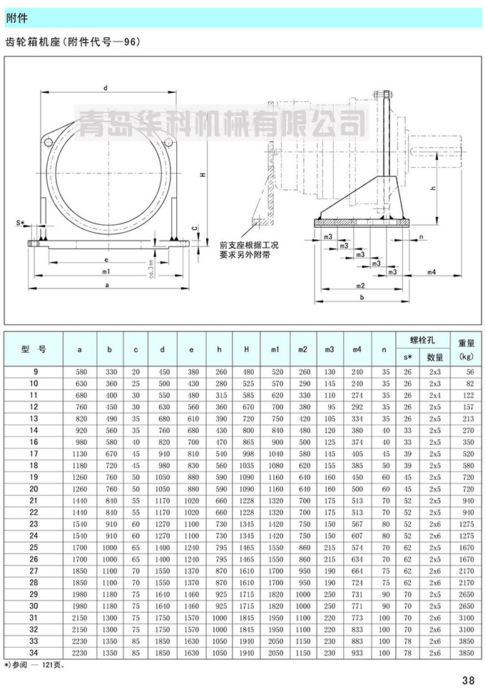 P系列行星齿轮减速器的齿轮箱机座(附件代号-96)